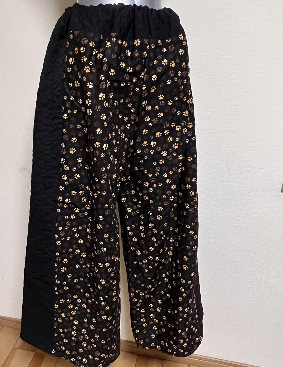 今回はお昼寝している猫ちゃんの柄のイージーパンツです。