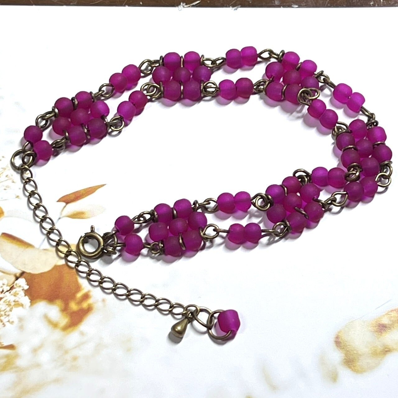 アンティークブレスレットは、優雅なデザインと心躍るぶどうカラーのガラス玉を使用した、特別なアクセサリーです。