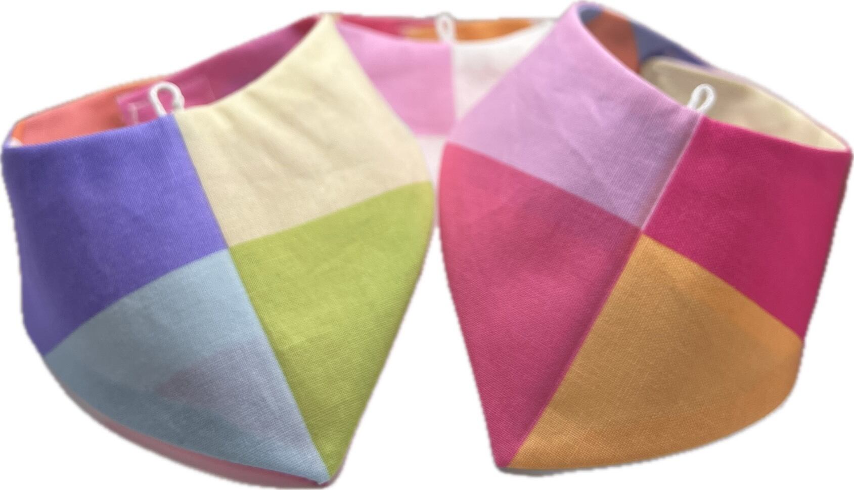 鮮やかな色合いが魅力の「ビビットカラーバンダナ」が新登場しました!猫ちゃんや小型犬用のLサイズで、愛らしい装飾を楽しむことができる一品です。ブルー系とピンク系のリバーシブルデザインなので、その日の気分に合わせて2つのスタイルを楽しむことができます。