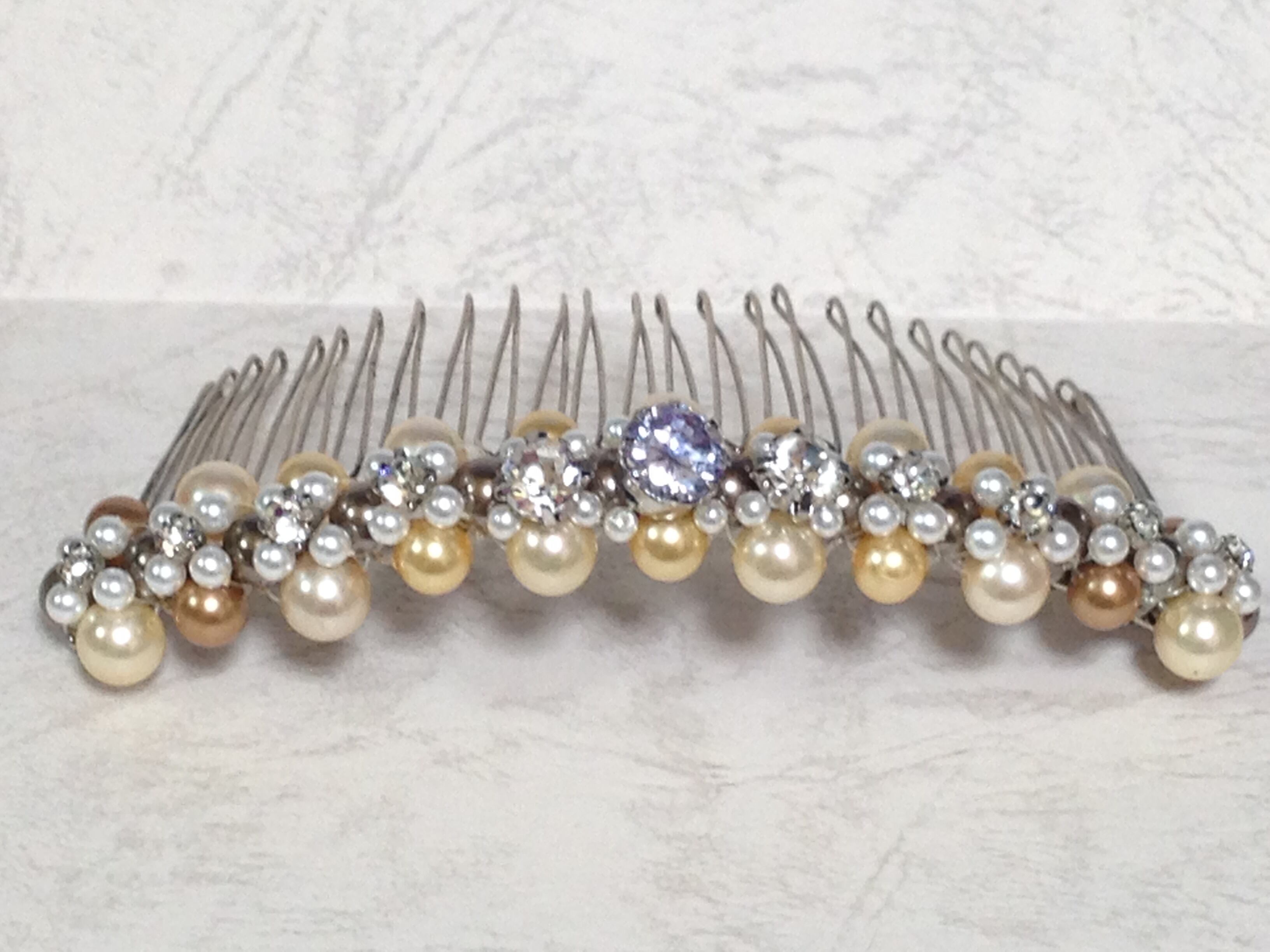 パールとサイズ違いのジルコニアをふんだんに使ったコームです。