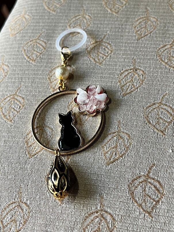 留め具(カニカン)が付いているものであれば、ご自身で好きな物に付け替え可能です。