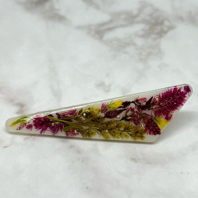 ケイトウのドライフラワーを使ったヘアクリップです。