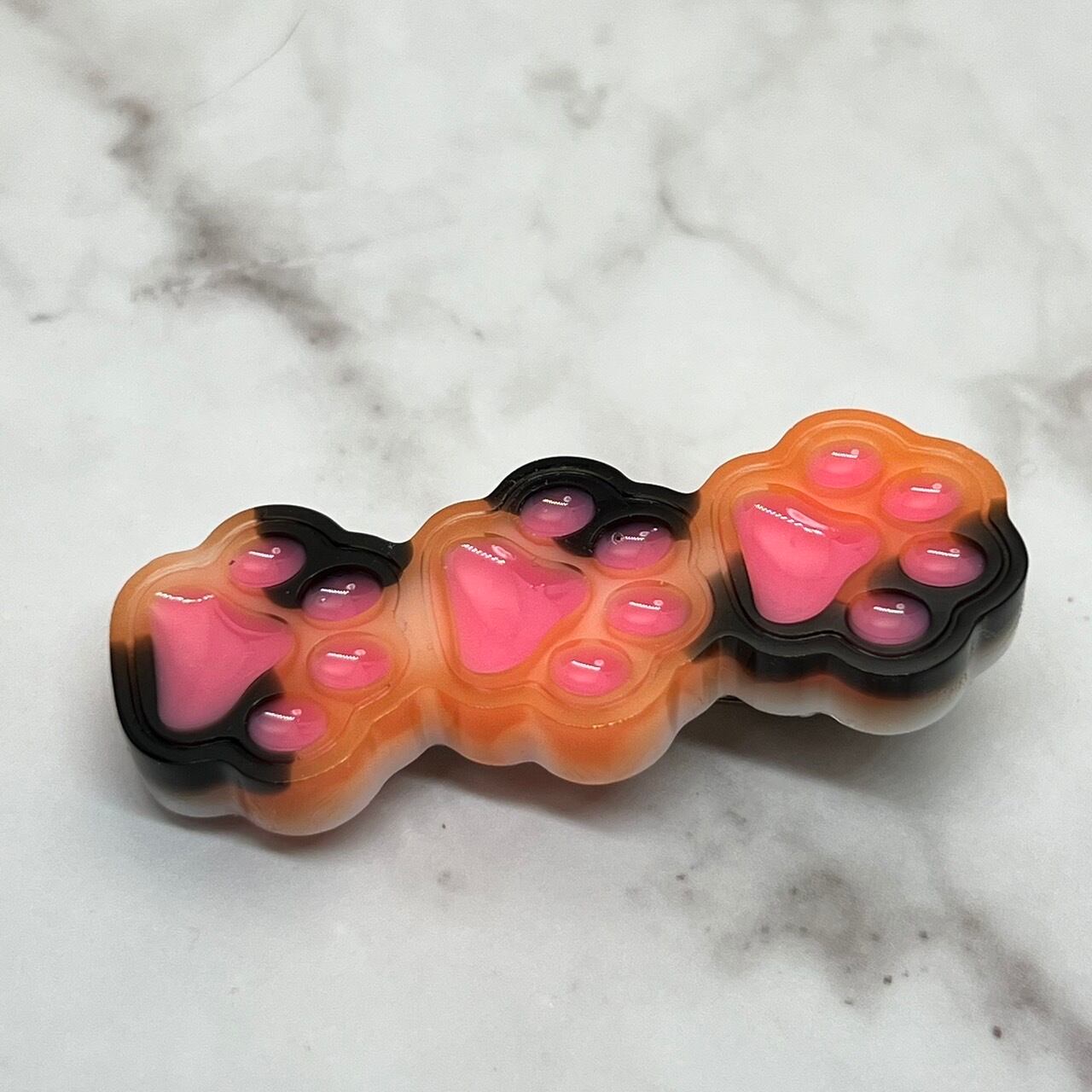 三毛猫の柄をもした肉球ヘアクリップです。