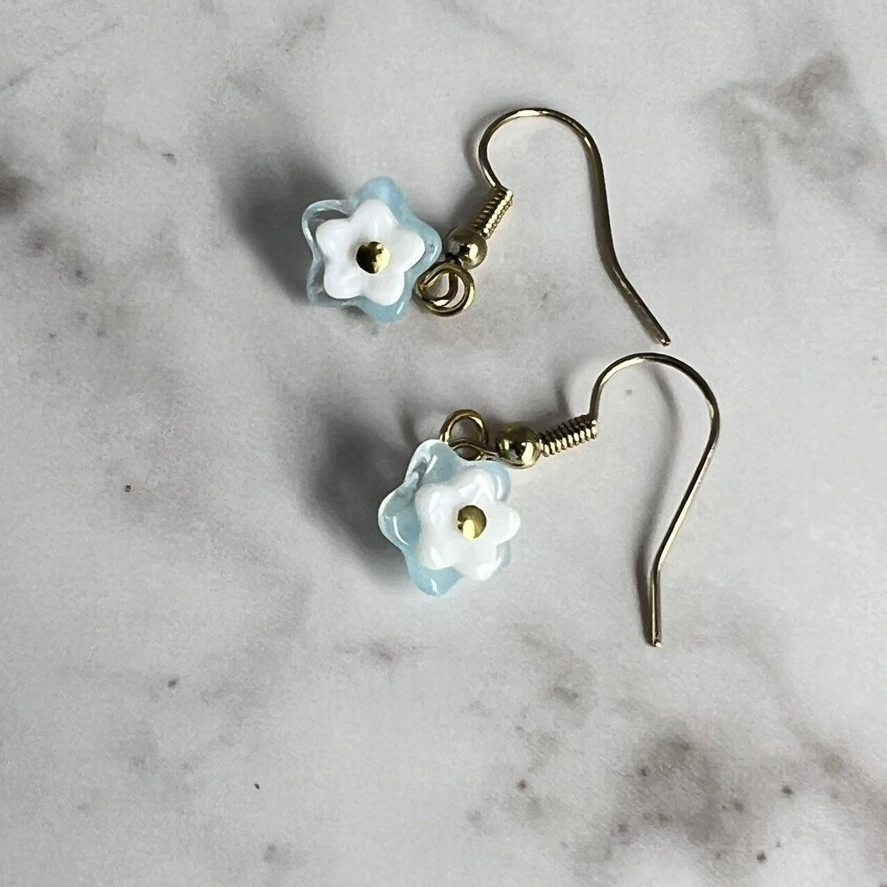 可愛らしいぷちガラスの花ピアスが出来ました。