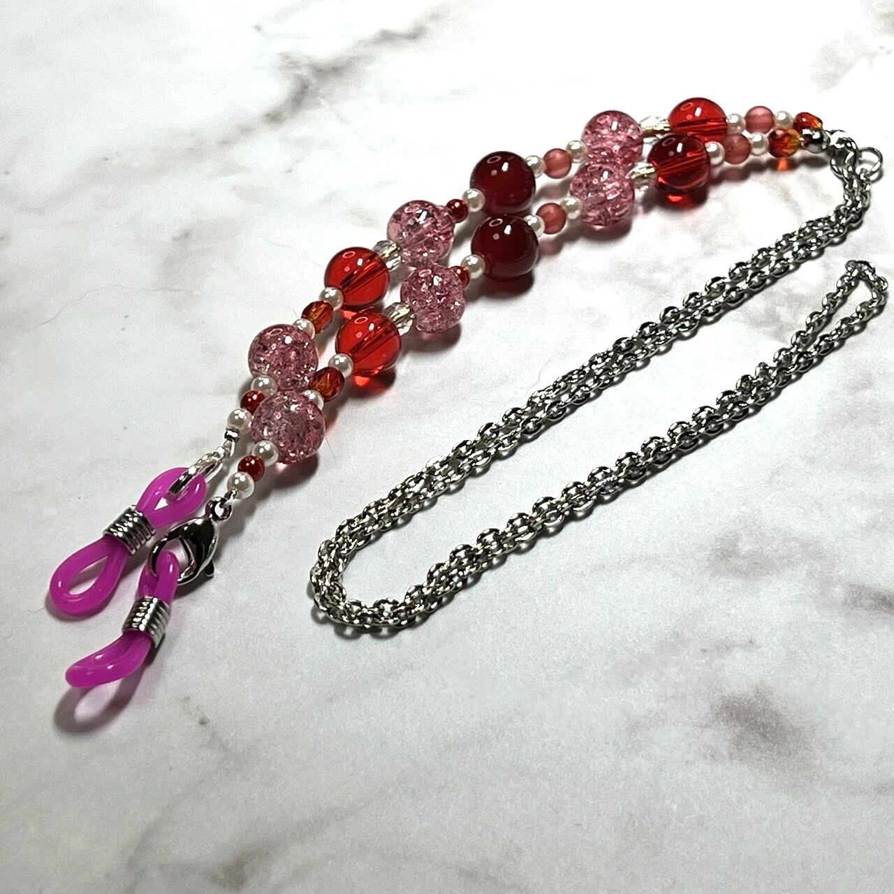 シックで上品なレッド系のグラスチェーンは、おしゃれな装いをより一層引き立ててくれます。