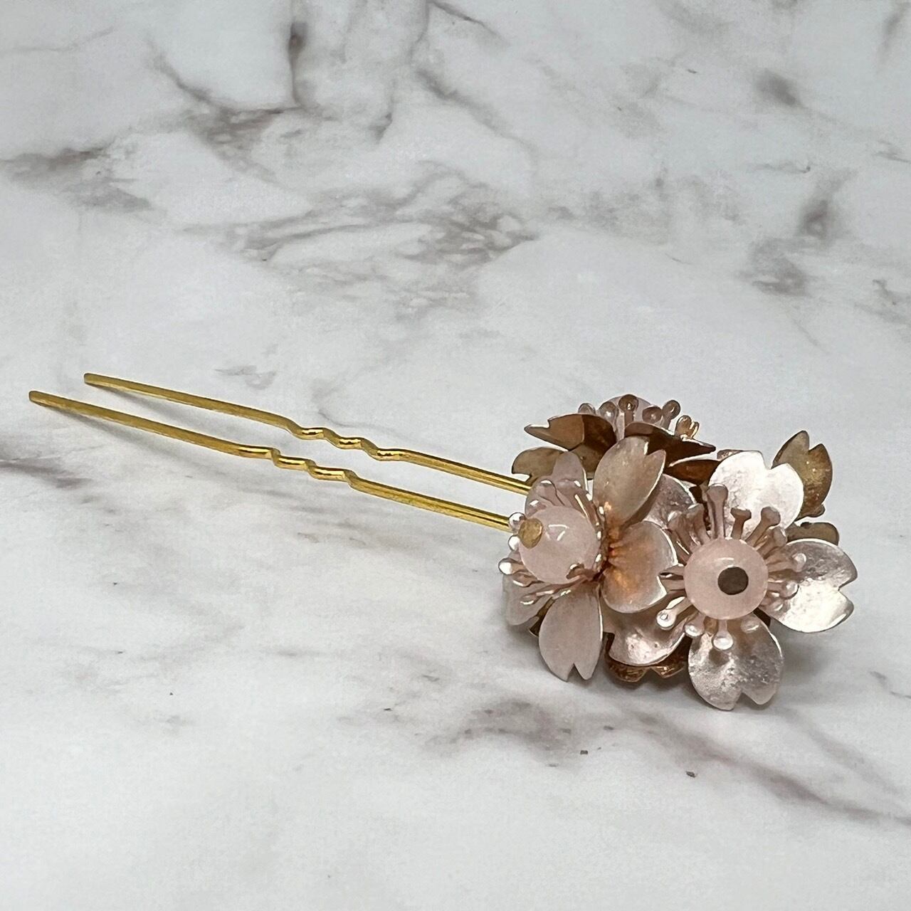花をモチーフに天然石を中心に配置したかんざしになります。