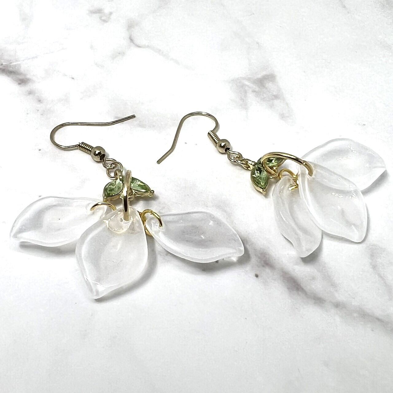チェコガラスで作った花びらのピアスです