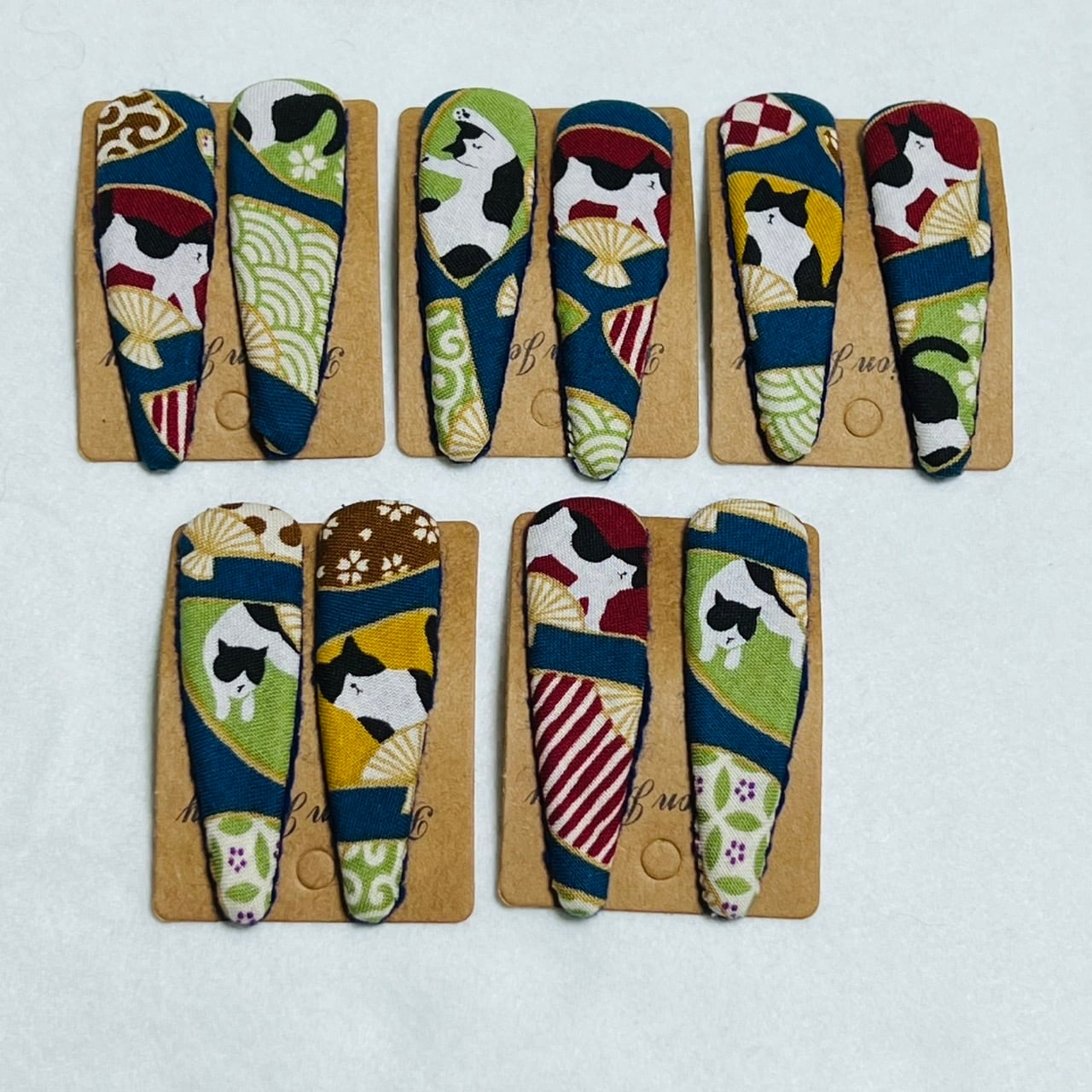 可愛い生地なので、作品で使って残った生地をパッチンピンにしてみました。