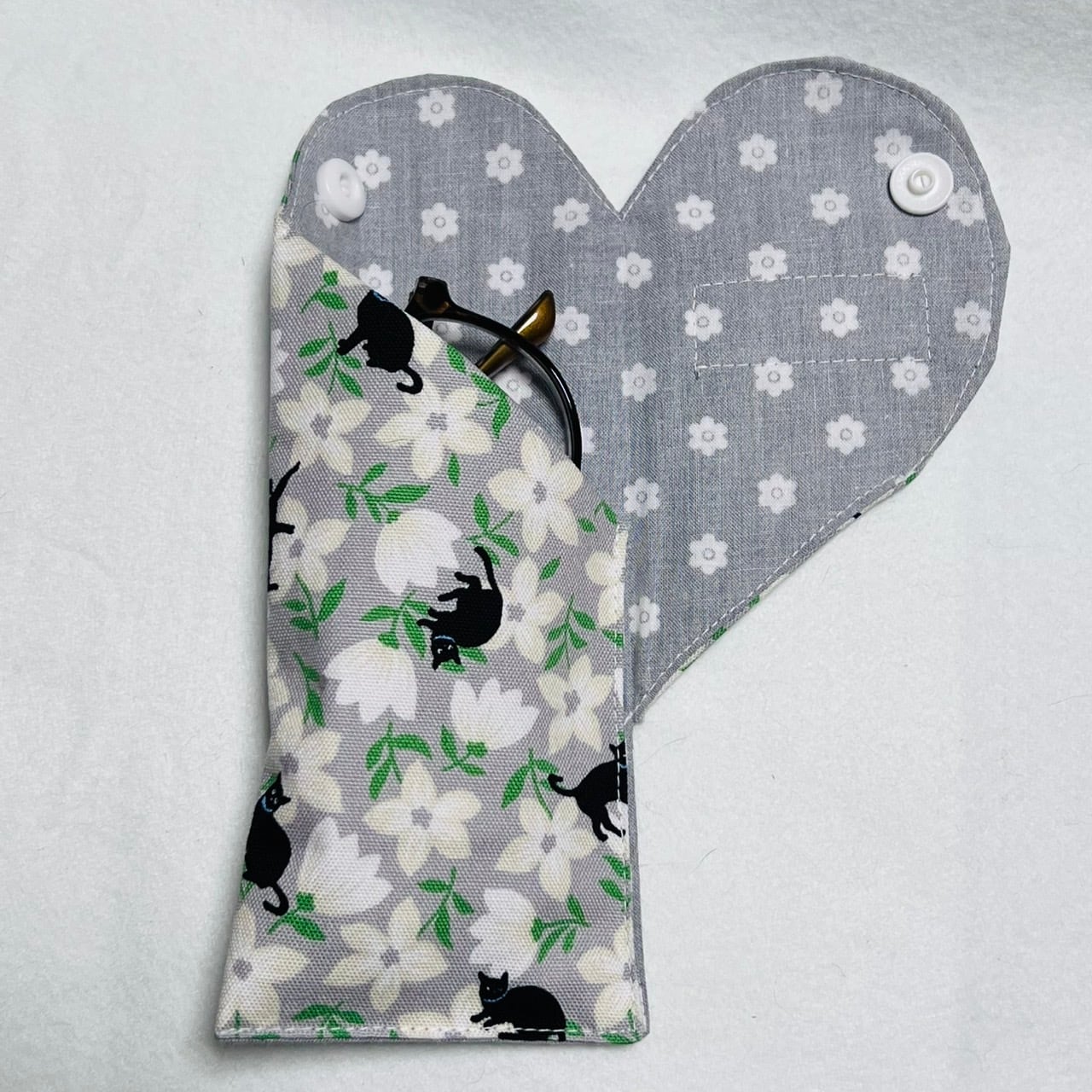 黒猫さんとお花の生地を使って眼鏡ケースを作りました。
