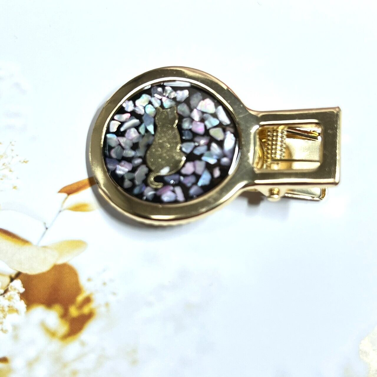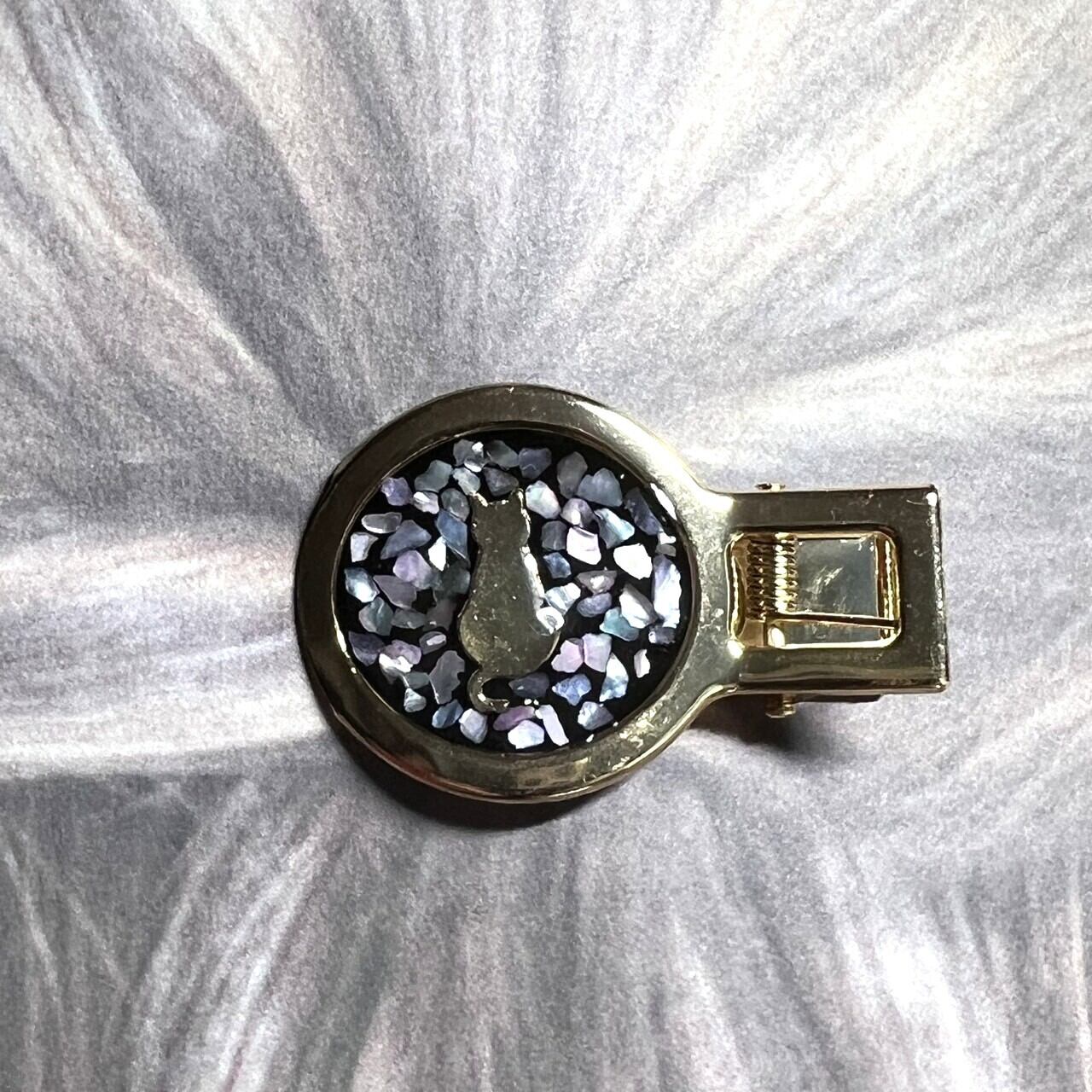 螺鈿風 猫のヘアクリップ